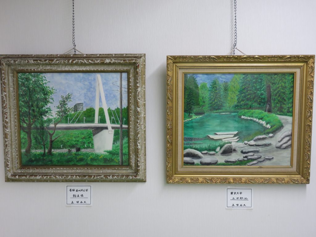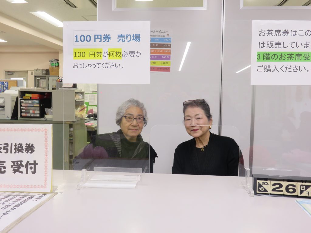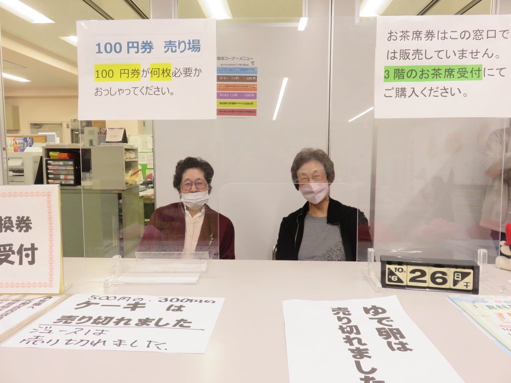 雨が降って肌寒い一日でしたが、喫茶コーナーでは、すいとんやおにぎり、茹で卵、ケーキ、コーヒーなどを購入したお客様同士で団らんされたり、家族連れの方が作品展を鑑賞した後、お茶席を体験し、輪投げ競技大会に参加されたりと、皆さまに楽しんでいただけました。