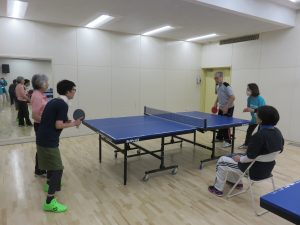 雨が降って肌寒い一日でしたが、喫茶コーナーでは、すいとんやおにぎり、茹で卵、ケーキ、コーヒーなどを購入したお客様同士で団らんされたり、家族連れの方が作品展を鑑賞した後、お茶席を体験し、輪投げ競技大会に参加されたりと、皆さまに楽しんでいただけました。