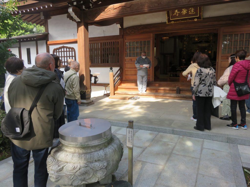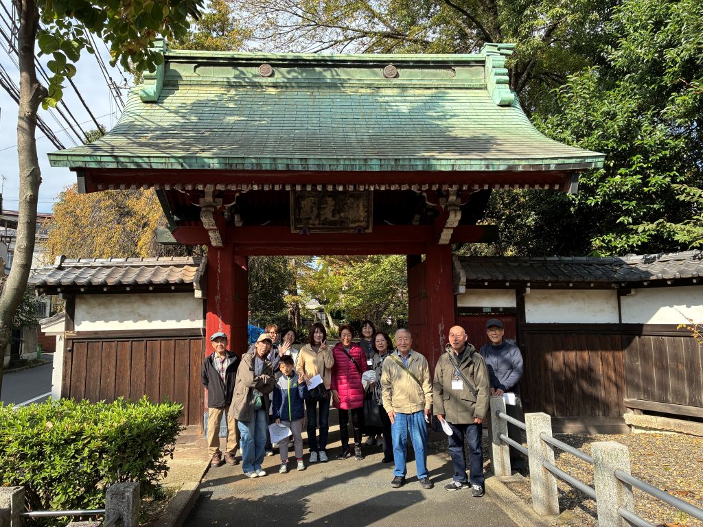 日蓮宗の泉光山蓮華寺では、副住職の井野上さんより蓮華寺の縁起を伺うことができました。蓮華寺は、徳川家綱の生母お楽の方が、家綱を懐妊した時の安産祈願をきっかけに厚く信仰する日優上人を祀ったのが始まりだそうです。