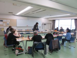 12月1日(月)9時30分から、季節感のあるホール作りのリーダー伊井さんが中心となり、ギャラリー、カフェカトレアの方々が7名程集まり、クリスマスツリーを組み立てたり、飾りを装飾したり、壁面にリースを飾ったりしてくださいました。「ツリーの飾りはどこかしら?」などとみんなでワイワイ、おしゃべりしながら装飾していると11時頃には完成し、イルミネーションを点灯すると、ホール一面がクリスマスムードに包まれました。