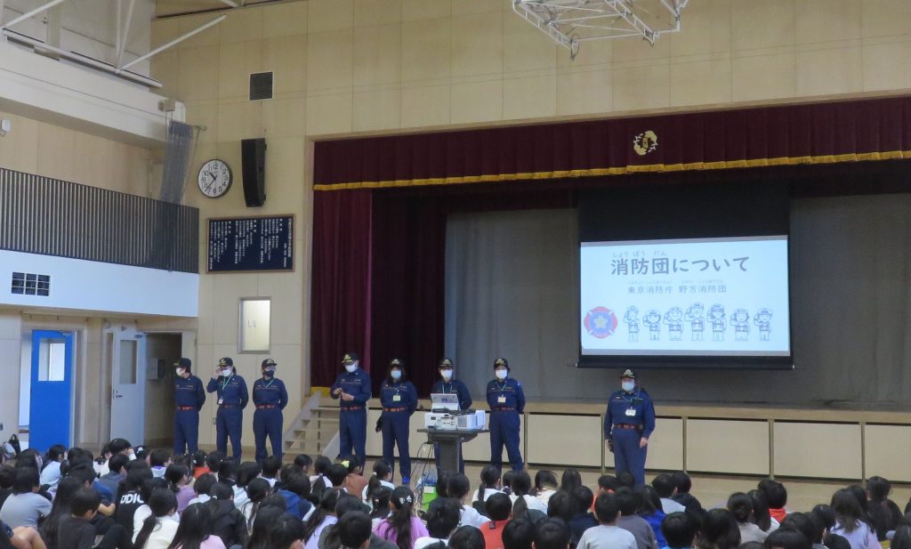 美鳩小学校でゲストティーチャーとして消防団の方を迎えて授業が行われました!